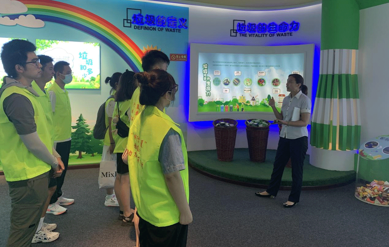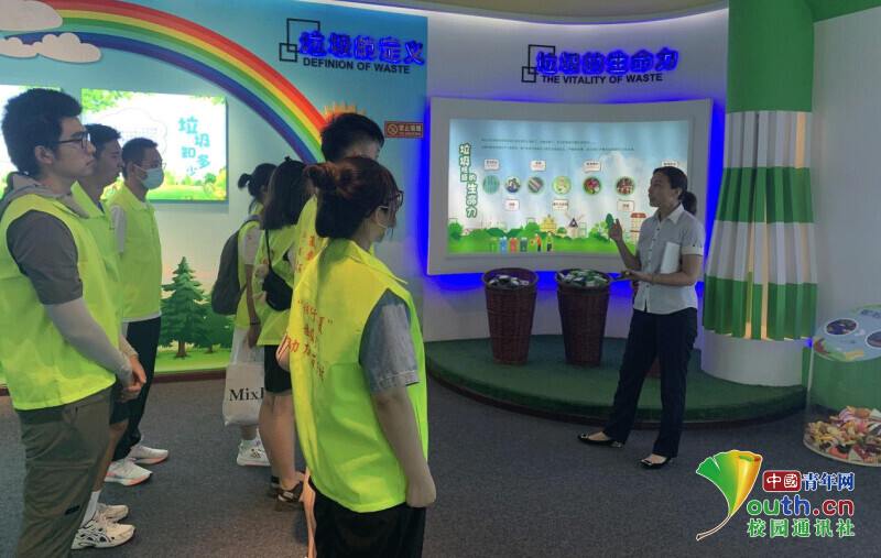 图为徐州市生活垃圾分类宣传教育基地讲解员为团队成员介绍生活垃圾处理的方法。中国青年网通讯员 朱可涵 供图
